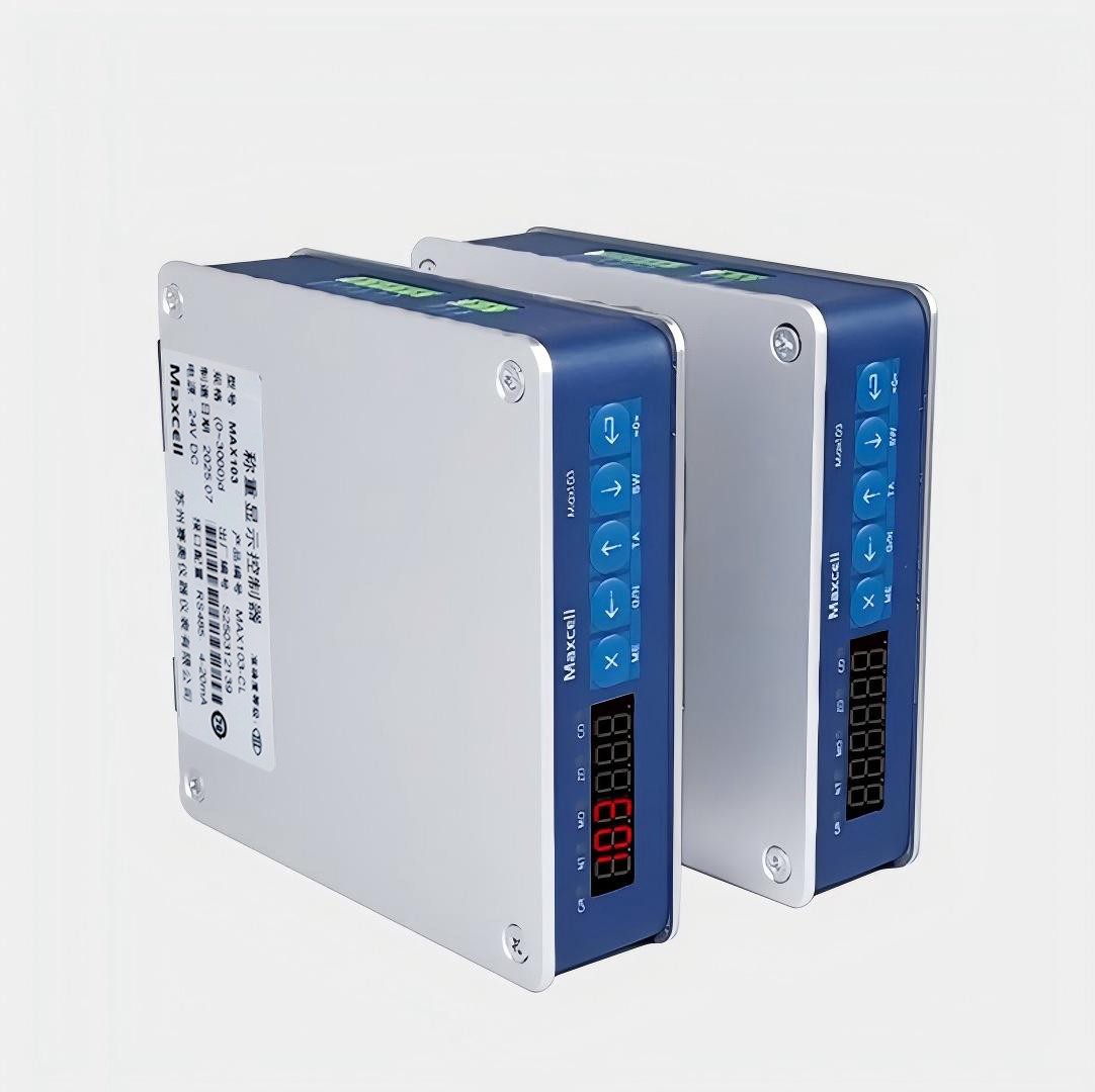 MAX103卡轨式重量变送器采用铝合金机壳,标配1路RS232接口,1路RS485接口,3入4出晶体管输入输出接口,接口丰富。最多可接8只350Ω模拟传感器